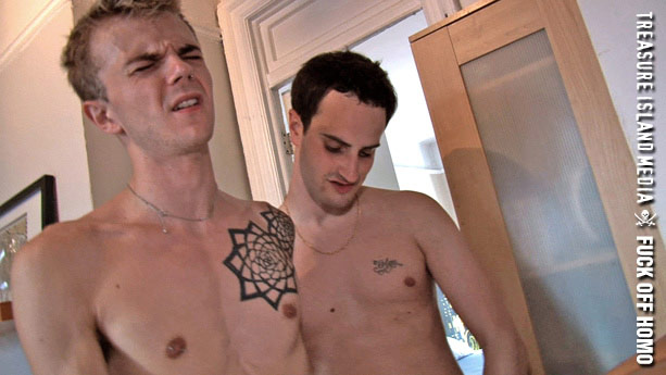 FUCK OFF HOMO is Max Sohl’s newest collection of breedings and seedings featuring a movie-within-the-movie sexperiment gone wild balls-to-the-walls anything goes raw and real 10-man orgy free for all.