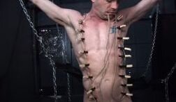 The beefy stud easily tosses PATRICK into a sling and drills him hard until they're both spent, and a little broken.