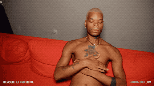 Self-sucker, Rory Christian rubs his nipples and rubs one out, all over his face. Yum, yum, we want some.