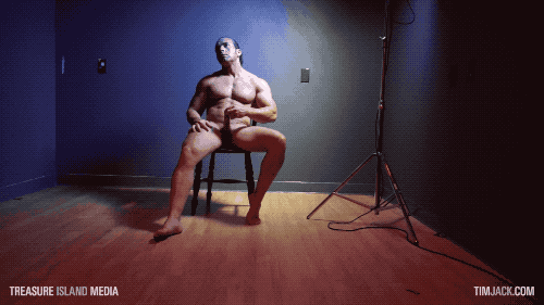 Beefcake Lorenzo strokes his meat, showing off his very heavy flow of precum and gushing load of seed.