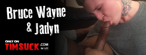 JADYN DANIELS pulls out BRUCE WAYNE'S mondo manhood and goes in for a taste with a sweet slow lick of his tongue.