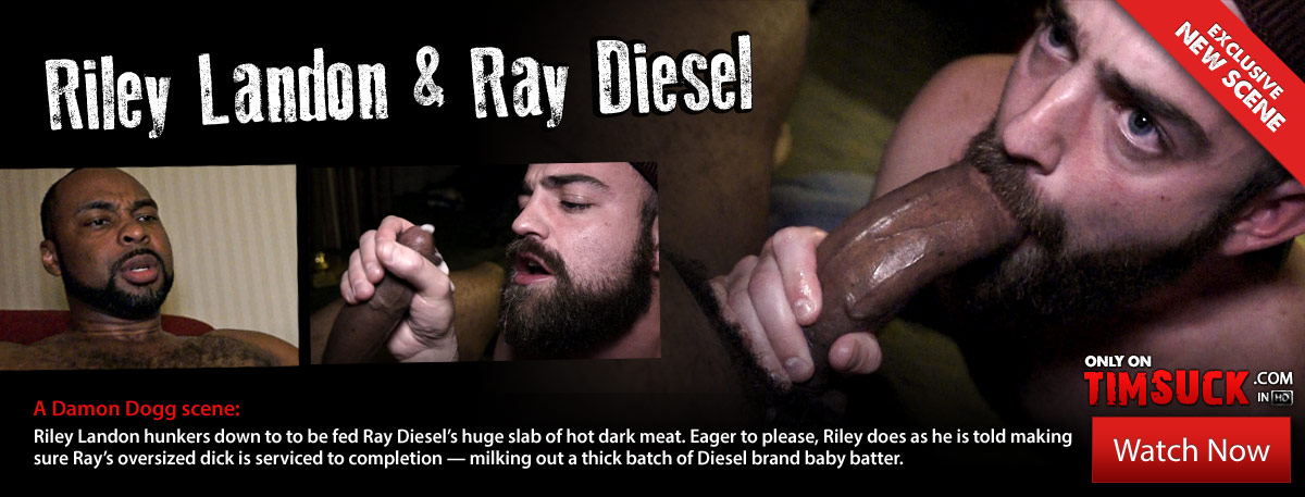 Eager to please, Riley does as he is told making sure Ray’s oversized dick is serviced to completion — milking out a thick batch of Diesel brand baby batter.