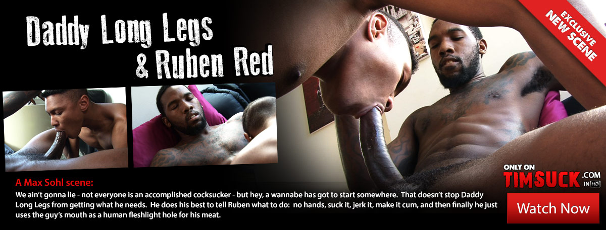He does his best to tell Ruben what to do: no hands, suck it, jerk it, make it cum, and then finally he just uses the guy’s mouth as a human fleshlight hole for his meat.