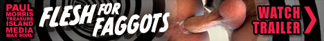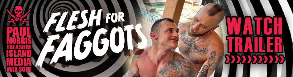 FLESH FOR FAGGOTS is the cum drenched new fuck film from resident pornographer ELLIOTT WILDER! Not 1, not 2 but 3 gangbangs! For fans this will be an instant Treasure Island Media classic. Highlights include an outdoor pool breeding party, fisting, double penetration, fucking, sucking, ass-to-mouth, big cumshots and multiple versatile men who go from fucking to getting fucked without missing a drop of jizz.